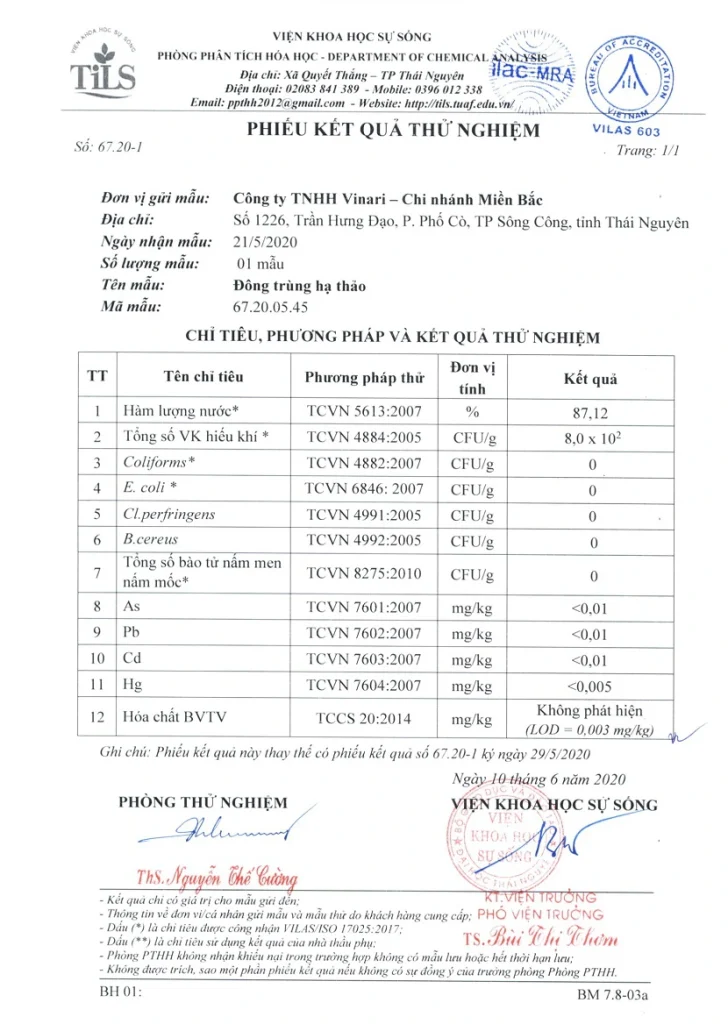 Đông Trùng Hạ Thảo có hàm lượng dược chất cao, hình thức đẹp, mùi vị thơm ngon. Sản phẩm được sản xuất sử dụng 100% nguyên liệu tự nhiên, đảm bảo sạch, an toàn, không chất kích thích, hóa chất, chất bảo quản