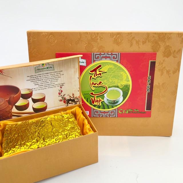 - Bộ Trà Long Việt được sản xuất trên nguyên liệu 100% búp trà tân cương thái nguyên tươi ngon nhất do các nghệ nhân trong nhà máy công ty Tân Cương Xanh