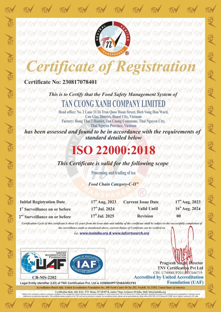 -100% trà sạch được trồng theo tiêu chuẩn VietGAP, đạt vệ sinh an toàn thực phẩm.