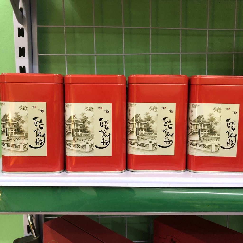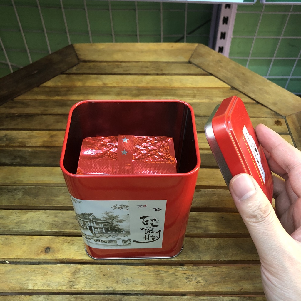 100gr chè Tân Cương Thái Nguyên hảo hạng hút chân không đựng trong hộp thiếc đỏ sang trọng