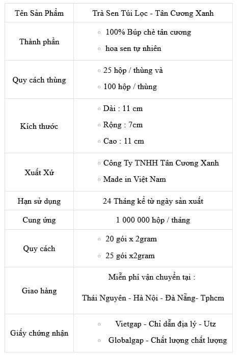 * Trà Sen Túi Lọc – Tân Cương Xanh được làm bằng nguyên liệu là các búp trà tân cương thái nguyên ngon nhất và hoa sen Tây Hồ tự nhiên